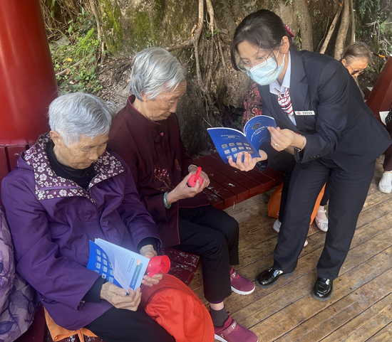 中行贵州省分行各分支行针对老年群体聚集的各类生活场景,结合其金融需求,提供精准化、多样化的金融服务,将金融知识送到老年群体身边。兴义分行营业部在大佛洞公园设置宣传点,通过发放反诈宣传手册、提供咨询与求助渠道,以及结合生动案例,用通俗易懂的语言讲解高收益理财骗局的防骗技巧,为老年群体筑牢反诈防线。现场还设置了互动问答有奖环节 ,极大提升了活动的趣味性与参与度。