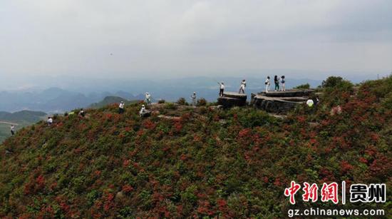 今天为大家推荐的每日一图是图为航拍贵阳市花溪区鸳鸯坡野生杜鹃花绽放引游人。石小杰 摄