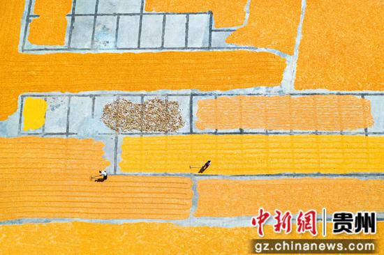 今天为大家推荐的每日一图是贵州省黔西市种植的玉米、水稻、高粱等农作物大面积进入收获季,图为村民在晾晒收获的玉米(无人机照片)。史开心 摄