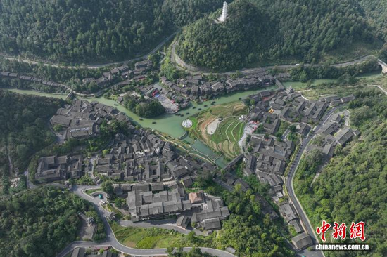 今天为大家推荐的每日一图是航拍乌江寨国际旅游度假区。(无人机照片)中新社记者 瞿宏伦 摄