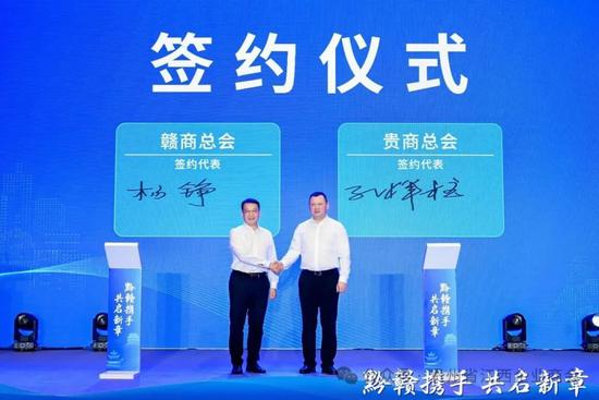 会议现场举行了重要签约仪式。赣商总会与贵商总会签署战略合作协议,双方将在产业对接、资源共享、企业服务等方面开展深度合作。