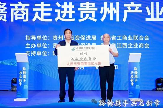 中国邮政储蓄银行贵阳分行与贵州省江西企业商会签署授信协议,为赣商在黔发展提供金融支持。