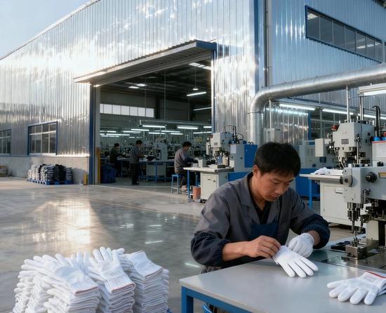 加工厂负责人黄总,返乡创业前一直在外地从事劳保用品销售,深知手套市场的广阔前景。“家乡有充足的劳动力,又毗邻物流枢纽,开办手套厂既有原料采购优势,又能带动乡亲增收。”黄总坦言,创业初期最大的难题是资金,从厂房租赁、设备采购到原材料储备,都需要资金支撑。