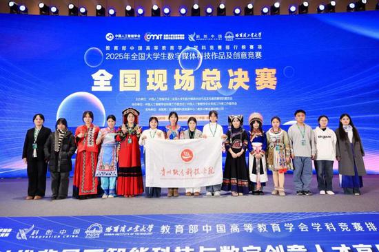 实践创新成效在各类高水平竞赛和展演中集中检验。2025年10月,在全国大学生数字媒体科技作品及创意竞赛全国现场总决赛中,学校学生团队荣获“AIGC数字作品创意创作”“民族文化创新表达”“影视与动漫设计”三个赛道本研组全国总决赛一等奖。艺术学院师生连续受邀参加贵州省春节团拜会文艺演出、台江“苗族姊妹节”等重大活动,表演《苗魅·姊妹花》等节目,展示教学水平,传承弘扬民族文化。