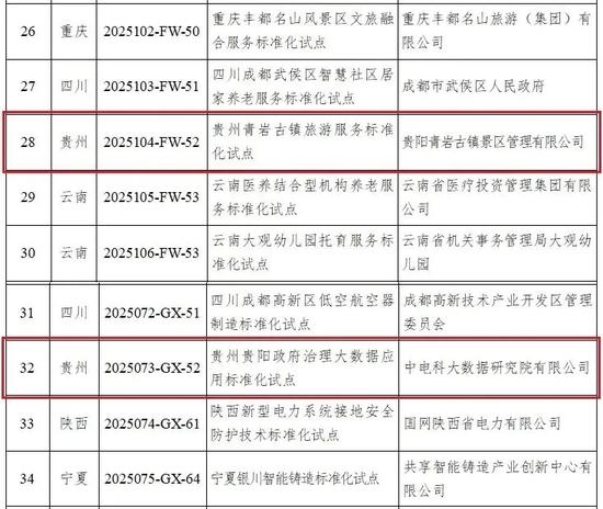 近日,国家标准化管理委员会正式公布2025年度国家标准化试点项目名单,由贵阳产控集团旗下贵阳市旅游发展集团有限公司(简称“贵阳旅发集团”)组织推荐申报的“贵州青岩古镇旅游服务标准化试点”成功入选,占贵州省获批项目总数的三分之一。