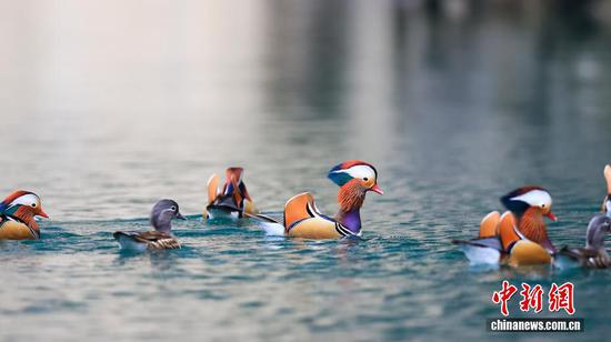 今天为大家推荐的每日一图是贵州省铜仁市天生桥大峡谷景区,一群野生鸳鸯在清澈的水面上嬉戏游弋,或掠过湖面盘旋飞舞。伍卫东 摄