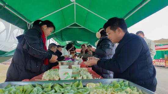 “今天是冬至,虽然天气比较寒冷,但我们相聚在一起,在草海包饺子,还可以在舞台边看表演、听歌,这个冬至过得很温暖、很开心。”盘石镇桃古坪村村民麻凤珍说。
