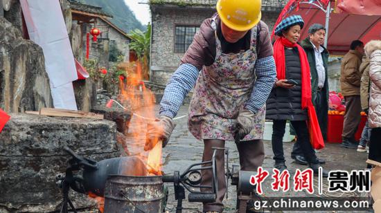 1月24日,贵州黔西南布依族苗族自治州册亨县陂鼐古寨集市上炸爆米花。李和江 摄