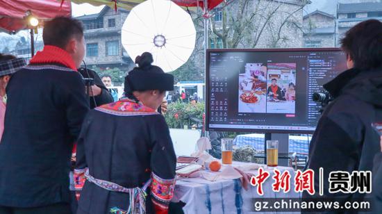 1月24日,贵州黔西南布依族苗族自治州册亨县陂鼐古寨直播年货现场。李和江 摄