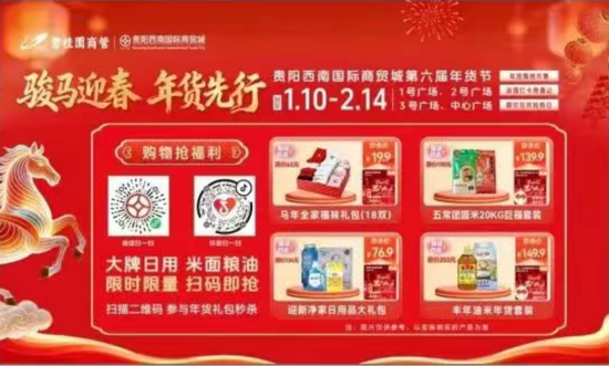 骏马驰骋迎新春,年货盛宴已开席。贵阳西南国际商贸城第六届年货节诚邀广大市民朋友莅临,选购心仪年货,参与趣味游园,共赴一场满载年味、福气与欢乐的新春之约,为即将到来的马年春节增添更多美好祈愿与幸福记忆。