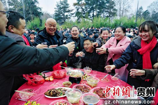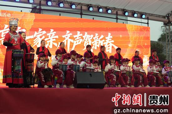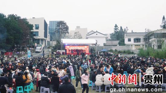 中新网贵州新闻1月28日电(施乐)1月27日,贵州省贵阳市观山湖区朱昌镇高寨村耶森草坪暖意融融、锣鼓喧天。由高寨村村民委员会与贵州多彩新媒体股份有限公司联合主办,朱昌镇、贵阳观山湖人才发展有限公司、产业园区入驻企业等多方支持的“高寨一家亲・齐声贺新春”新老村民融合联欢活动如期举行。