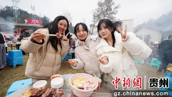 小兰山以此次“村晚”为契机,深度激活“村企共建・亲邻共融”的发展基因。活动自下午14时正式启幕,第一阶段“围炉烤肉・影映团圆”便迅速点燃氛围:耶森草坪上,5个集中炭火区与50桌配备小烤炉的餐桌同步开放,新鲜猪肉、土豆、黄粑、二块粑等特色食材整齐摆放,新老村民分工协作、翻面调味,在炭火滋滋声中品味地道乡村年味;一旁的“新年全家福”拍摄点前,观山湖区到村任职选调生化身志愿者,手持新春氛围道具,为村民家庭、企业员工团队定格团圆瞬间,这些照片经冲印装裱后不仅赠送给参与者,更将成为高寨村“幸福墙”的珍贵素材,让团圆记忆永久留存。