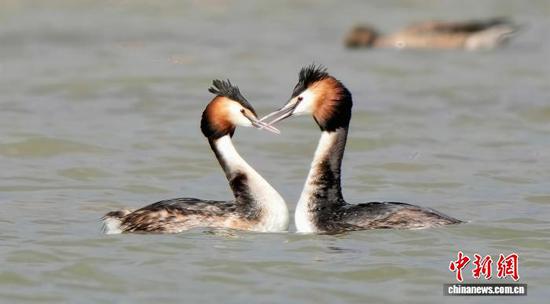 今天为大家推介的每日一图是贵州省毕节市威宁彝族回族苗族自治县草海国家级自然保护区,一对凤头䴙䴘上演“春之恋”。岳刚 摄