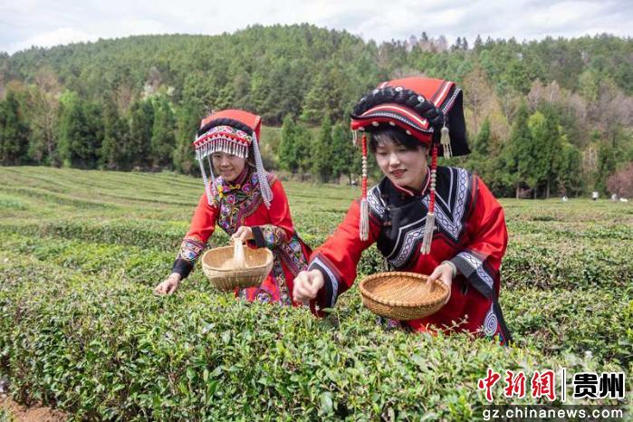3月29日,在贵州省毕节市威宁彝族回族苗族自治县炉山镇茶园村,茶农采茶忙。