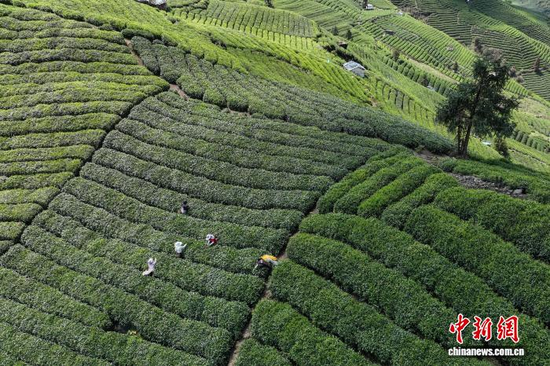 今天为大家推荐的每日一图是4月3日,茶农在贵州省黔南州贵定县云雾镇境内的茶园采摘春茶。记者 瞿宏伦 摄