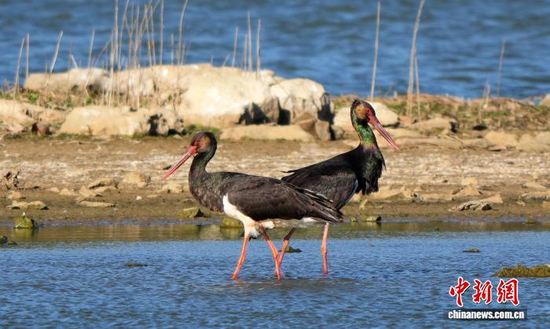 今天为大家推介的每日一图是在贵州省毕节市威宁彝族回族苗族自治县草海国家级自然保护区湿地,被誉为“鸟中大熊猫”的国家一级重点保护野生动物黑鹳,悠然觅食,尽享春光,勾勒出一幅生机盎然的春日生态美景。岳刚 摄