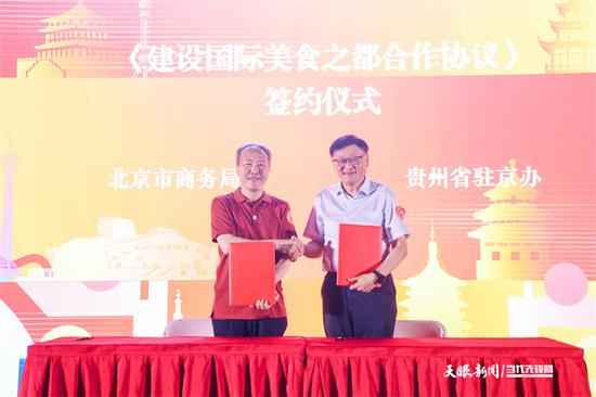 启动仪式上,北京市商务局与贵州省驻京办签订《建设国际美食之都合作协议》。未来,双方将共同凝聚自身资源,发挥各自比较优势,强化合作,以大型展会和促消费活动为契机,在京持续开展黔菜黔货宣传推介活动,提升黔菜美誉度、影响力,拓展优质黔货进京渠道。京黔合力,共同携手,将进一步推动北京建设成为荟萃全球风味的国际美食之都,更好地满足市民游客品质化、特色化、多样化、便利化餐饮消费需求。