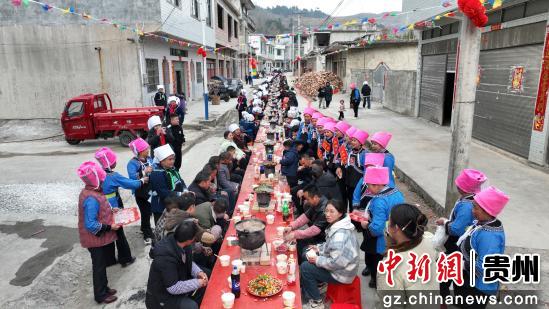 1月30日,大年初二,在贵州省惠水县摆金镇斗底村,当地260余名外嫁的姑妈身着盛装,带着家人和精心准备的礼物,满心欢喜地回到娘家,与亲人团聚,共同欢度新春佳节。(刘金柱 陈小刚 李晋)