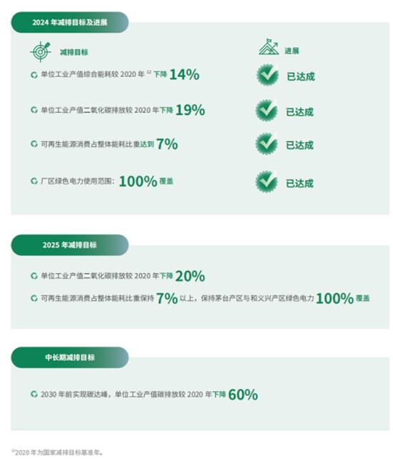 自2021年以来,贵州茅台单位工业总产值二氧化碳排放强度已连续3年持续下降,其中2024年较2020年下降3%,,单位工业总产值综合能耗较2020年下降14%,单位工业总产值二氧化碳排放较2020年下降19%。