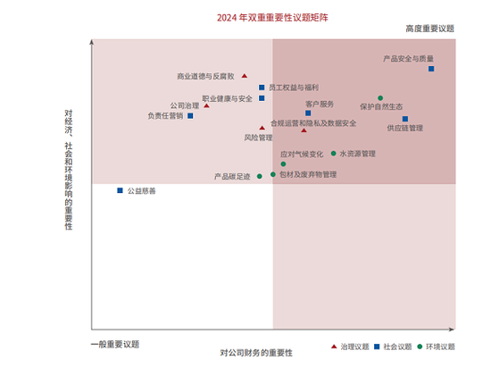 《贵州茅台2024年ESG报告》的最大突破在于构建“财务-影响”双维议题评估矩阵。通过筛选出产品安全与质量、保护自然生态、供应链管理、客户服务、合规运营和隐私及数据安全等16项兼具财务与影响双重重要性的议题,全面响应监管机构最新合规指引。