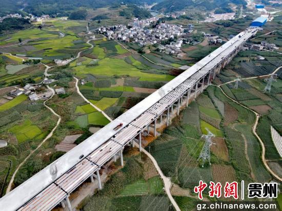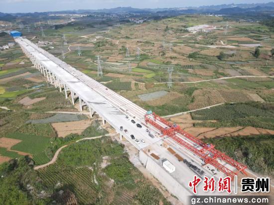 中新网贵州新闻9月4日电 (彭云 徐硕)4日,随着架桥机操作手发出清脆指令,贵安高速扩容工程十二标项目最后一片30米T梁稳稳落在桥墩支座上,标志着该标段1504片T梁架设任务全部完成,项目建设取得突破性进展。