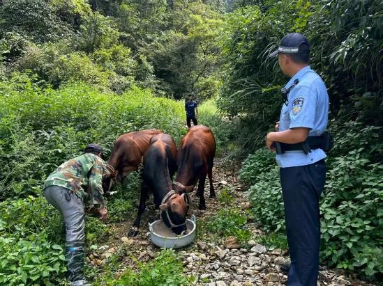 经了解,民警一边安抚杨某的情绪,一边对现场进行勘查。通过查看周边环境,发现山坡上没有明显人为拖拽痕迹,且耕牛平时活动范围固定,初步排除被盗可能,推测耕牛可能是走失到了附近山林。