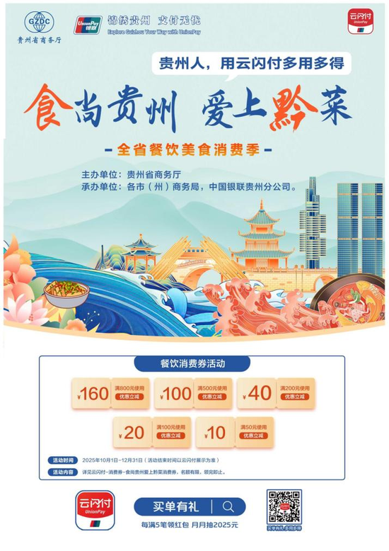 2025年“食尚贵州・爱上黔菜”餐饮消费券10月1日起发放