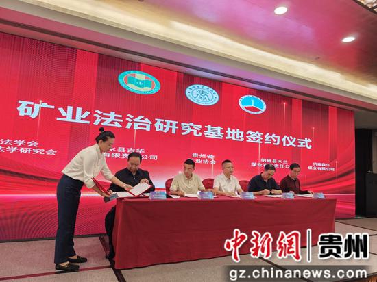 中新网贵州新闻10月10日电(石小杰)10月10日,“新矿法实施背景下贵州‘富矿精开’的法治问题与对策”研讨会在贵阳国际生态会议中心举行。百余位来自法学界、政府部门及高校专家学者齐聚一堂,共同为贵州“富矿精开”战略注入坚实的法治内核。贵州省政协原副主席武鸿麟、贵州省法学会专职副会长兼秘书长王占霞等出席并见证“矿业法治研究基地”签约并授牌。