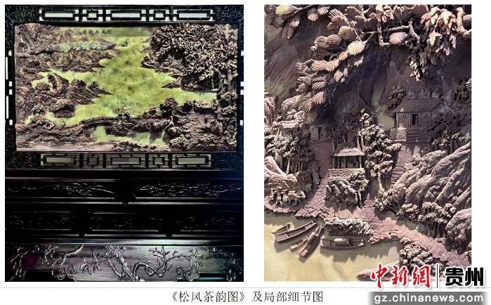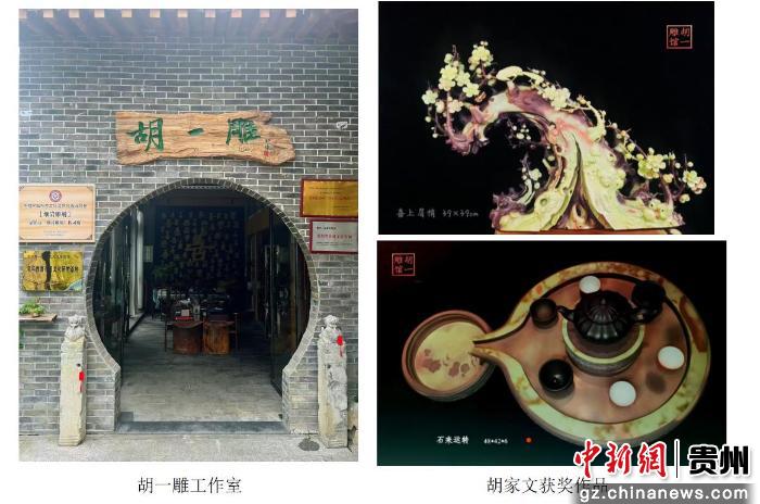中新网贵州新闻12月12日电 (蒋司卿 邵俊伟 王伟)冬日,贵州省贵阳市清镇市四季贵州半山小镇——清晨的阳光透过玻璃窗洒在胡一雕工作室的操作台上,38岁的胡家文正俯身在一块紫袍玉带石料前,手中的电磨刀发出细微的嗡鸣。石屑纷飞间,一张茶台渐渐清晰:茶台上,古松的虬枝在石面上舒展开苍劲的纹理,就连石板小径上散落的松针,都被细若发丝的线条勾勒得纤毫毕现。