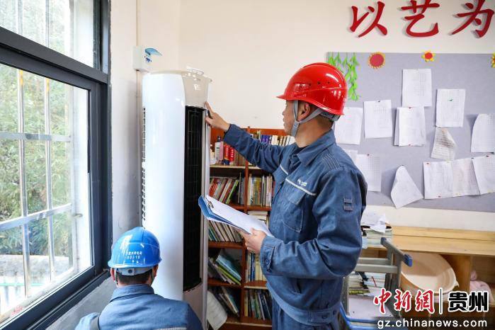六盘水钟山供电局大湾供电所工作人员在海嘎小学检查用电设备。 瞿宏伦 摄