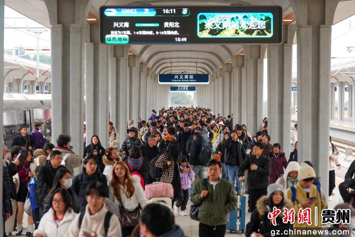 1月1日,元旦假期首日,贵州盘州至兴义铁路迎来客流高峰。