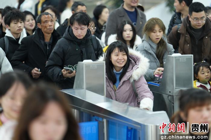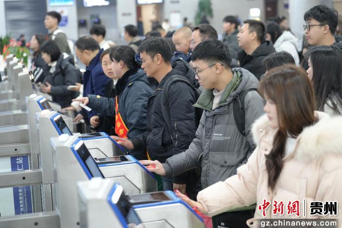 2月2日,广铁集团怀化车务段铜仁站,旅客正在检票进站。申逸恺 摄