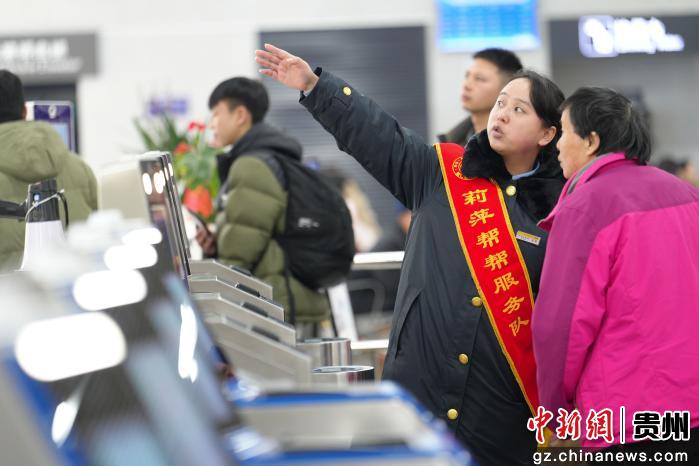 2月2日,在广铁集团怀化车务段铜仁站,工作人员为旅客讲解当日列车车次。申逸恺 摄