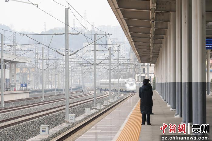 2月2日,在广铁集团怀化车务段铜仁站,一列高铁列车正驶入站台。申逸恺 摄