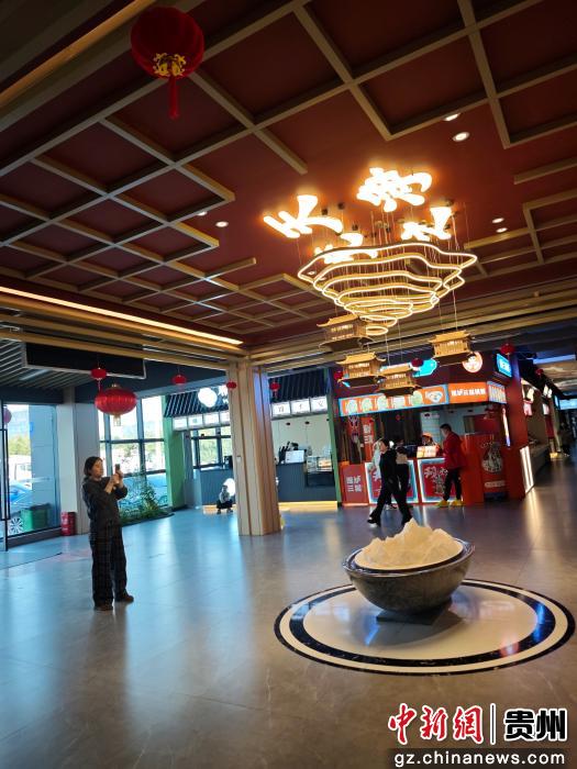 图为2月14日,旅客在贵州省铜仁市向阳服务区(杭瑞高速杭州方向)内观赏展陈。石小杰 摄