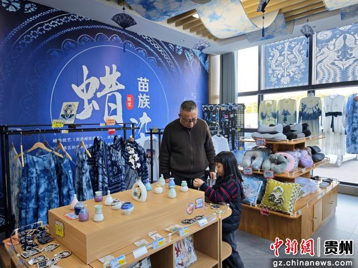 图为2月14日,旅客在贵州省铜仁市向阳服务区(杭瑞高速杭州方向)内购买少数民族特色商品。石小杰 摄