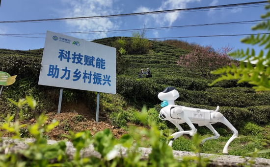 在都匀螺蛳壳的万亩茶园中,一只由中国移动打造的智能机器狗正代替人工,昼夜不息地巡山护林。它不仅是“巡逻员”,更是“侦察兵”——依托中国移动高速率、低时延的5G网络,机器狗能够实时回传高清画面,让茶农对山间每一处新芽的萌发都了如指掌。而在山下的茶叶生产车间内,都匀毛尖国家级非遗传承人张子全一边熟练地包装茶叶,一边通过手机屏幕,实时查看机器狗从茶山回传的高清影像。“我坐在家里,就能清楚看到茶园里有多少人在采茶,哪里发了芽,哪里还没动静,一目了然。”张子全向记者展示手机端的监控界面时感慨道。