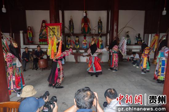 8月22日,2025多彩贵州·第十八届中国原生态国际摄影大展“访秋”主题采风团走进安顺市西秀区旧州镇詹家屯村。来自印度尼西亚以及中国贵州省、江西省、广东省的摄影师实地探访安顺地戏,通过近距离观摩了解其表演形式与文化内涵。作为国家级非物质文化遗产,安顺地戏凭借独特的历史传承和艺术魅力,吸引了中外摄影师的关注。(唐哲)