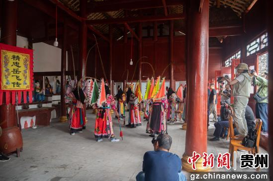 图为中外摄影师拍摄安顺地戏。唐哲 摄