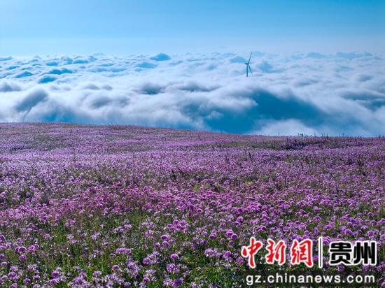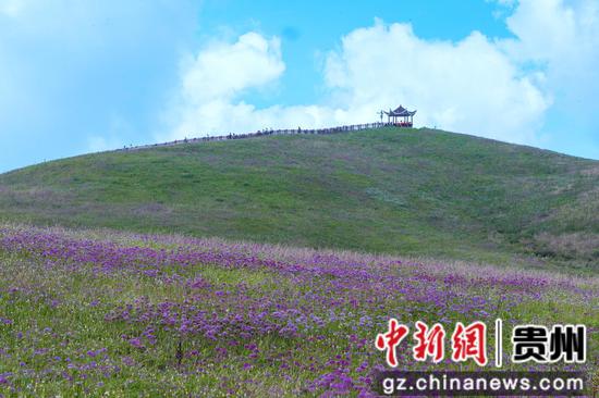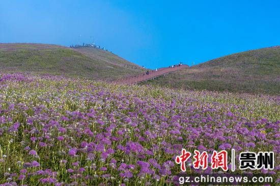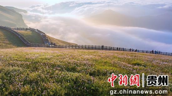 时下,贵州省毕节市赫章县阿西里西·韭菜坪景区内野生韭菜花陆续开放,吸引各地游客前往游览观光。(李华)