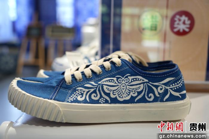 贵州织金县绣娘制作的蜡染帆布鞋。周燕玲摄