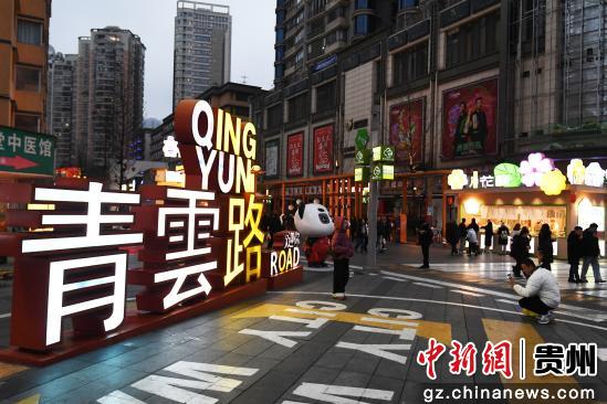 2月1日,市民游客在贵阳市南明区青云路步行街拍照打卡。