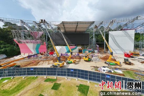 中新网贵州新闻8月15日电(张奕妍)8月14日,随着2025年亚洲青年攀岩锦标赛的临近,位于观山湖公园民族大联欢广场的贵州·彩湖国际攀岩中心施工建设现场一片繁忙景象。