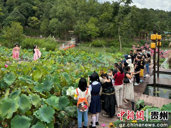 2025年暑期,问仙谷荷花池盛开,引来众多摄影师、游客等前来打卡。水雾系统、船舶、道具等也免费供摄影师、游客使用。暖心之举也让问仙谷的旅拍也成为2025年贵阳旅拍热点之一,每天旅拍的“仙女们”络绎不绝,被摄影师称呼为“宝地”。