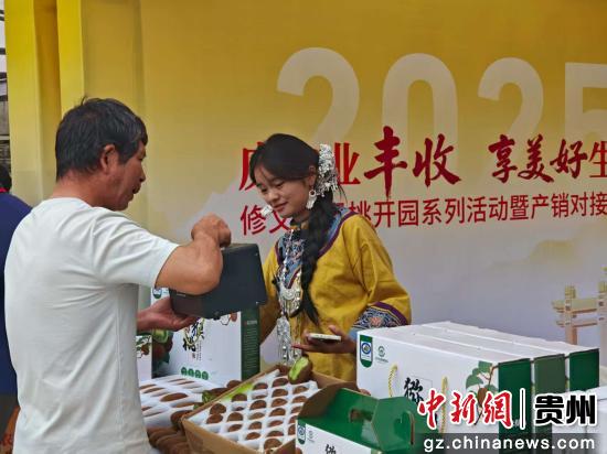 中新网贵州新闻9月21日电(石小杰)21日,修文猕猴桃2025年开园系列活动暨产销对接大会在贵阳市修文猕猴桃核心产地谷堡镇平滩村“印象猕猴桃”广场举行,标志着修文猕猴桃正式进入批量上市阶段。现场同步推进产销对接与文旅深度融合,助力修文猕猴桃卖得快、卖得远、卖得俏。