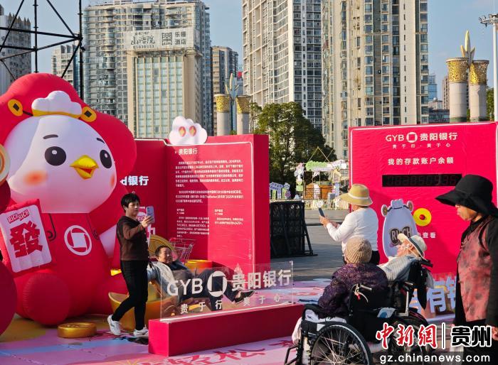 图为游客在贵阳市南明区筑城广场的贵阳银行展陈前拍照打卡。石小杰 摄