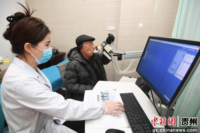 1月29日,贵阳市南明区新华路街道社区卫生服务中心的医护人员正在为老年人进行肺功能检查。
