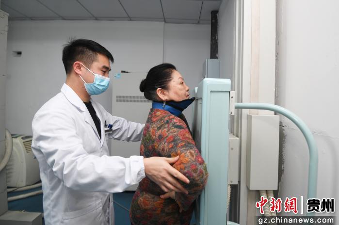 1月29日,贵阳市南明区新华路街道社区卫生服务中心的医护人员正在为老年人进行胸部DR正位检查。