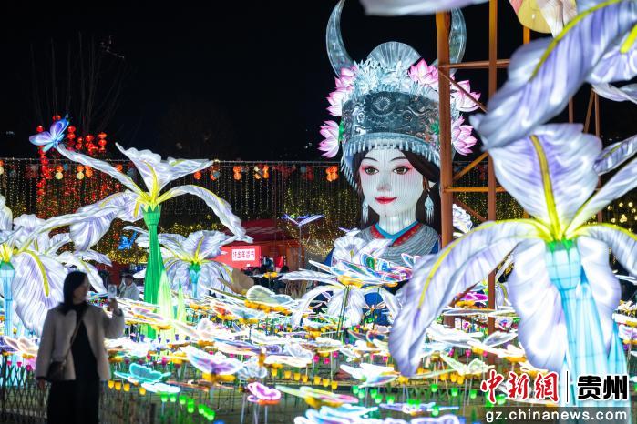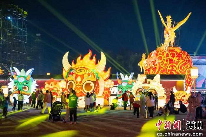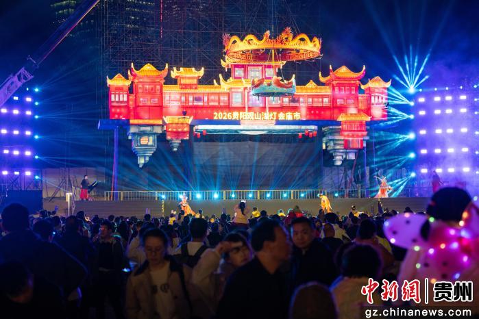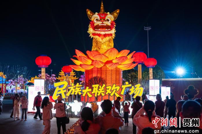 2月25日,贵州省贵阳市,民众在观山湖公园民族大联欢广场赏灯游园。当晚,2026贵阳观山湖灯会庙市灯光璀璨,吸引民众观赏游玩。