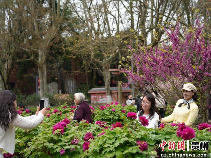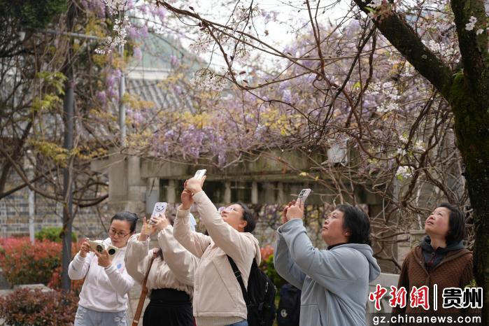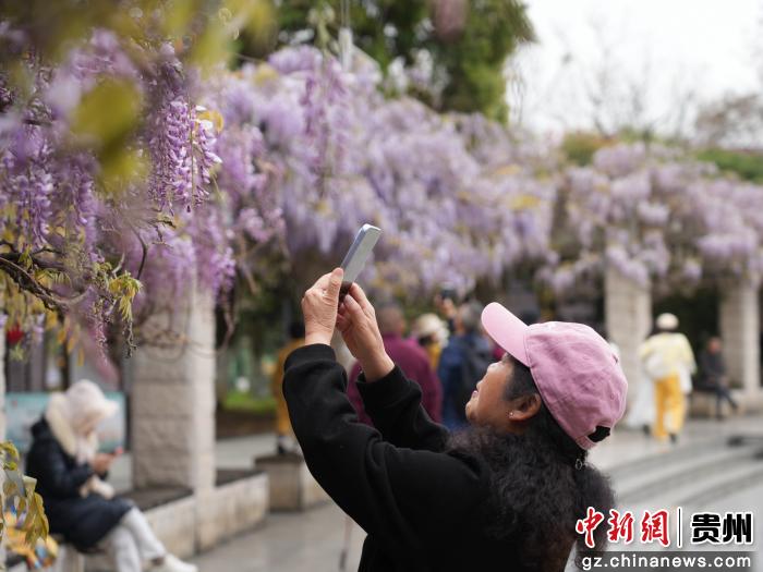 3月22日,游人在贵州省贵阳市花溪区花溪公园里赏花拍照。春暖花开时节,人们纷纷来到户外踏青赏花,尽情享受着美好的春光。